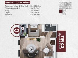 Banesë për shitje në London Residence, Gjilan. Me sipërfaqe 66.63m² në katin e 8-të, kjo pronë ofron dhomë ndejeje, 1 dhomë gjumi, banjo, depo dhe ballkon. E ndërtuar me standarde të larta dhe e pozicionuar në një lokacion të favorshëm, ideale për banim komod – një mundësi ekskluzive për jetesë cilësore ose investim.