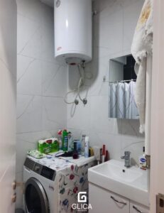 Banjo: dush me xham ndarës, WC, lavaman, bojler, lavatriçe